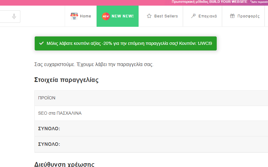 Eπίσης εμφανίζει στον πελάτη σας στο thank-you-page αντίστοιχο μήνυμα σε πράσινο πλαισιο.