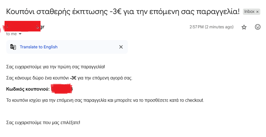 Εάν ειναι η πρωτη συνολικά παραγγελία του πελάτη, Τότε όταν η παραγγελία του μπει σε κατάσταση “Λήφθηκε” ή “Στάλθηκε, στέλνεται αυτόματα το εμαιλ αυτό