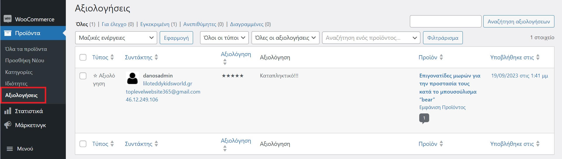 Πως τις βλέπετε και διαχειρίζεστε αναλυτικά στο admin: